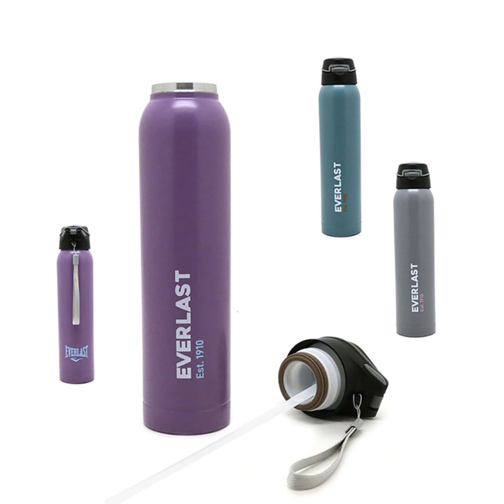 “Botella termica Everlast, de capacidad 750 ml. Botella de acero inoxidable con capa externa 100% de Acero Inoxidable AISI 201 y capa Interna 100% de Acero Inoxidable AISI 304. Tapa a rosca de polipropileno. Burlete y sorbete de silicona color transparente.