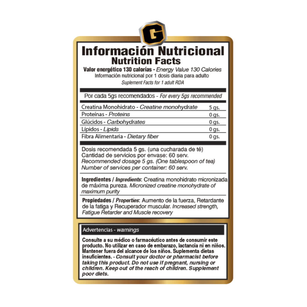 CREATINE MONOHYDRATE de GOLD NUTRITION contiene la fórmula de creatina más avanzada.